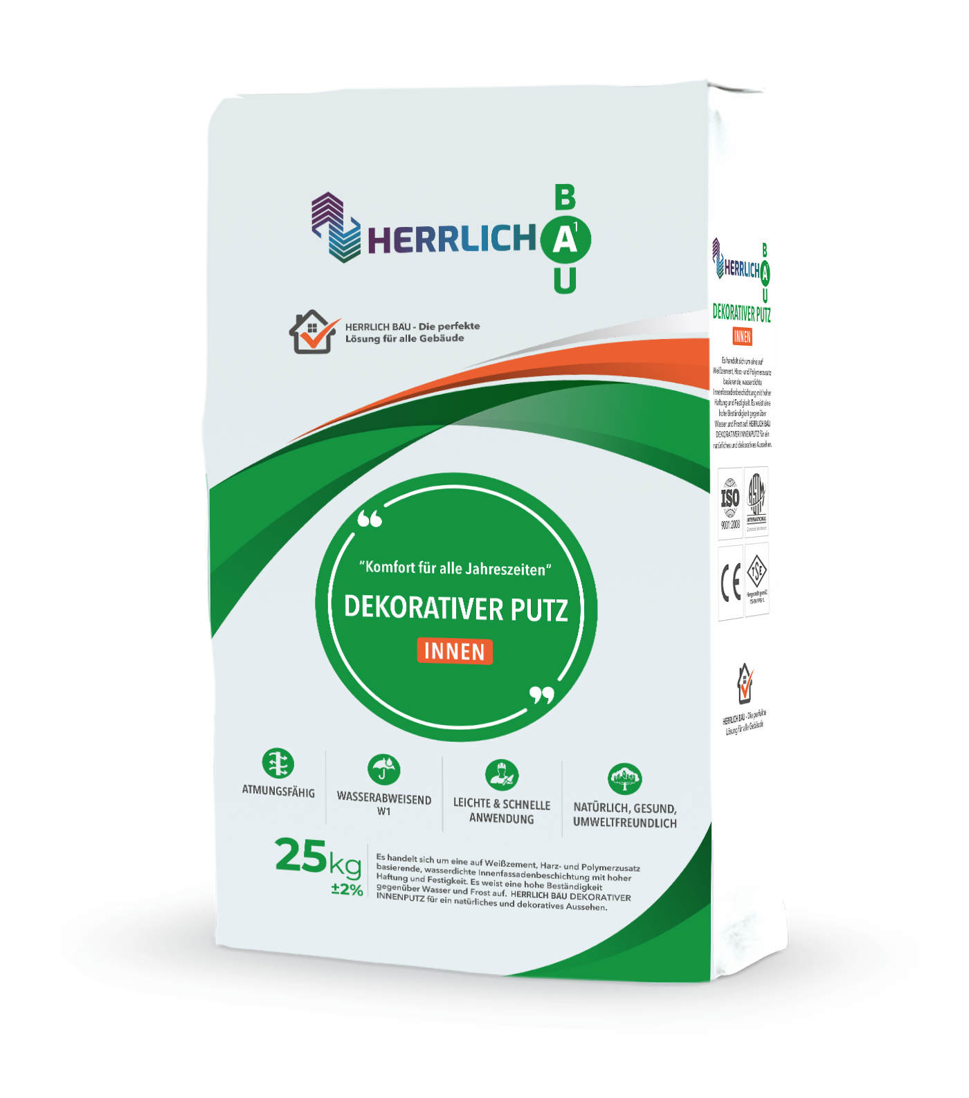 HERRLICH BAU Decorative Plaster is added slowly in clean and cold water and mixed with a low speed mixer for about 10 minutes until the mixture becomes lumpy. The mixed mortar is rested for 5 minutes and mixed again. If necessary, the consistency of the mixture is adjusted again by adding water. The required amount of water should be adjusted according to the weather conditions.